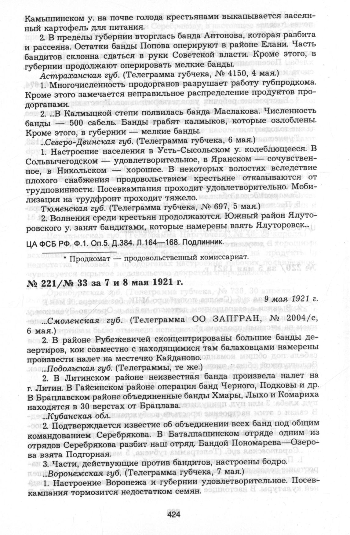 Из оперативно-информационной сводки секретно-оперативного управления ВЧК № 33 за 7 и 8 мая 1921 г. 9 мая 1921 г. // ЦА ФСБ РФ. Ф.1. Оп.5. Д.384. Л.156—163. Подлинник.