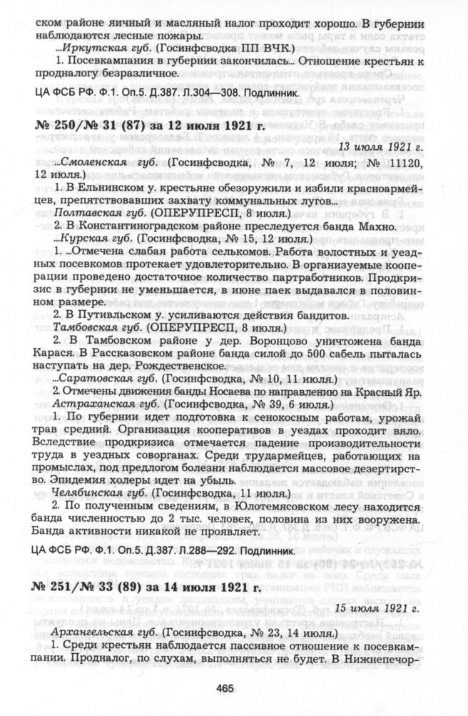 Из госинфсводки информационного отдела ВЧК № 33 (89) за 14 июля 1921 г. 15 июля 1921 г. // ЦА ФСБ РФ. Ф.1. Оп.5. Д.387. Л.280—283. Подлинник.