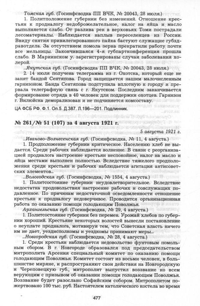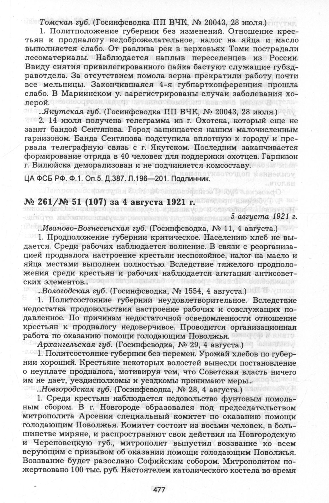 Из госинфсводки информационного отдела ВЧК № 51 (107) за 4 августа 1921 г. 5 августа 1921 г. // ЦА ФСБ РФ. Ф.1. Оп.5. Д.387. Л.181—184. Подлинник.