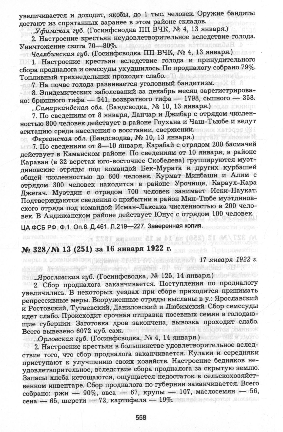 Из госинфсводки информационного отдела ВЧК № 13 (251) за 16 января 1922 г. 17 января 1922 г. // ЦА ФСБ РФ. Ф.1. Оп.6. Д.461. Л.219—227. Заверенная копия.