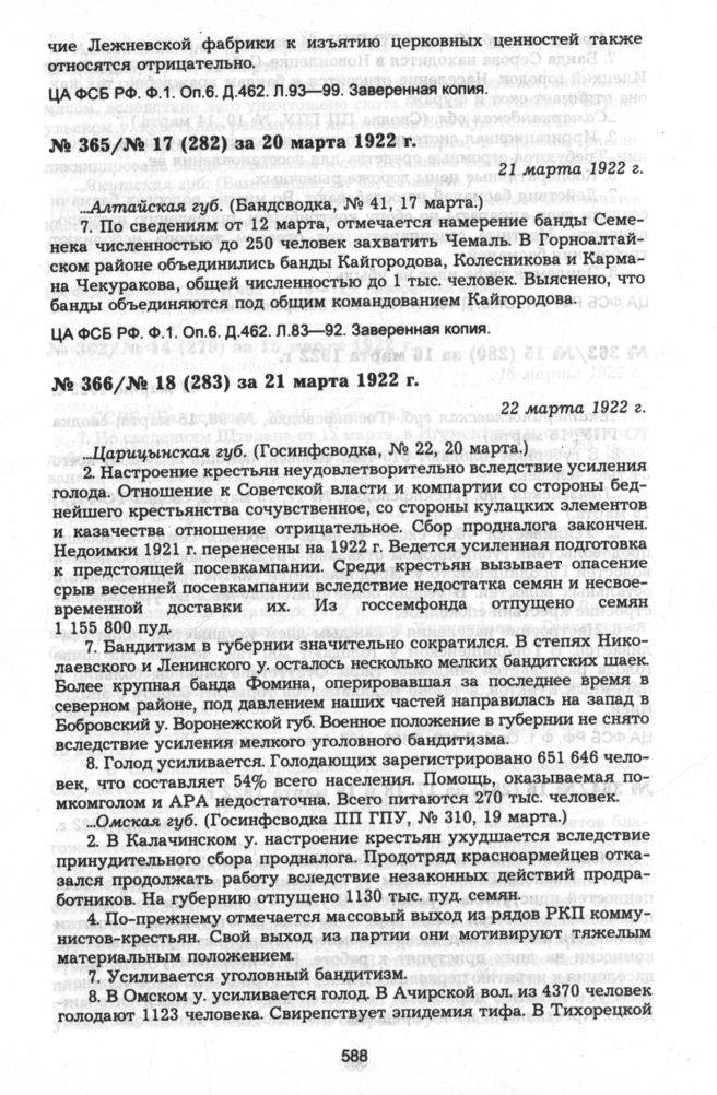 Из госинфсводки информационного отдела ВЧК № 18 (283) за 21 марта 1922 г. 22 марта 1922 г. // ЦА ФСБ РФ. Ф.1. Оп.6. Д.462. Л.75—82. Заверенная копия.