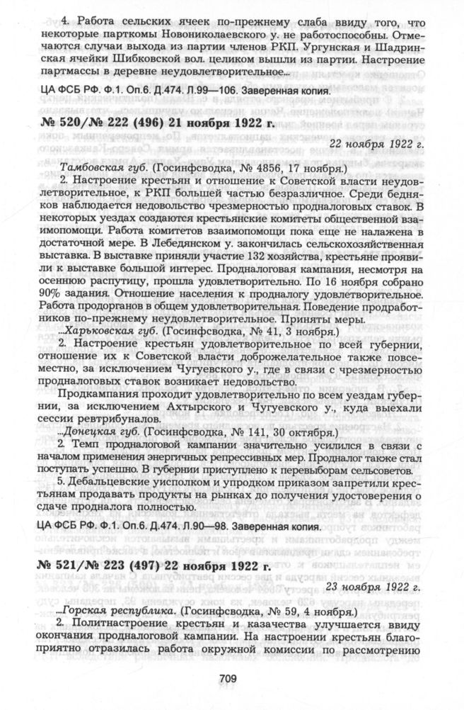 Из госинфсводки информационного отдела ВЧК № 223 (497) 22 ноября 1922 г. 23 ноября 1922 г. // ЦА ФСБ РФ. Ф.1. Оп.6. Д.474. Л.80—89. Заверенная копия.