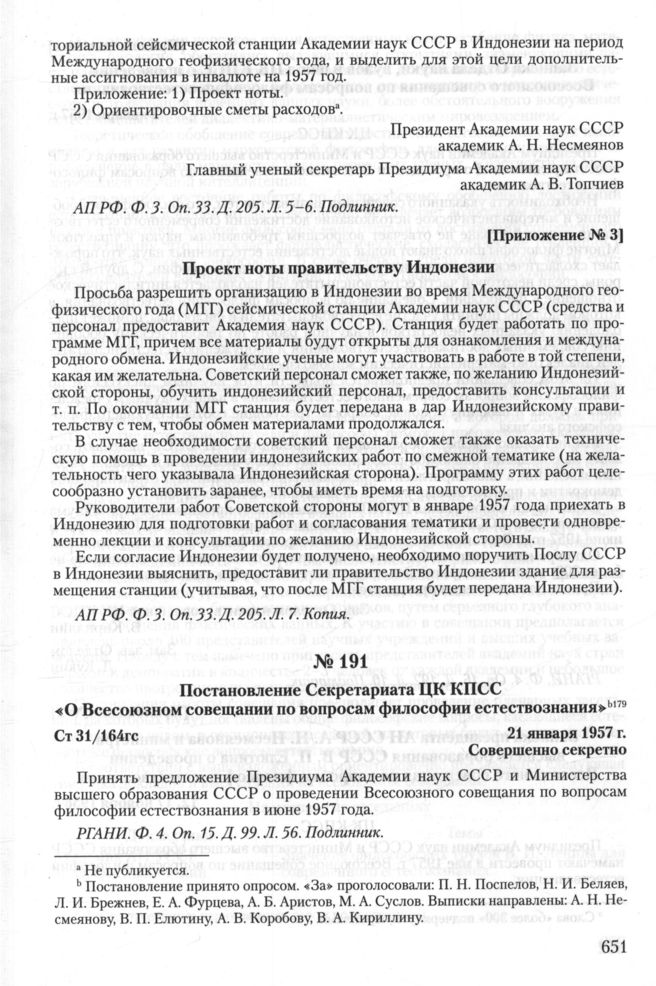 Академия наук в решениях Политбюро ЦК РКП(б)—ВКП(б)—КПСС. 1922—1991. 1952—1958. — М.: РОССПЭН, 2010.