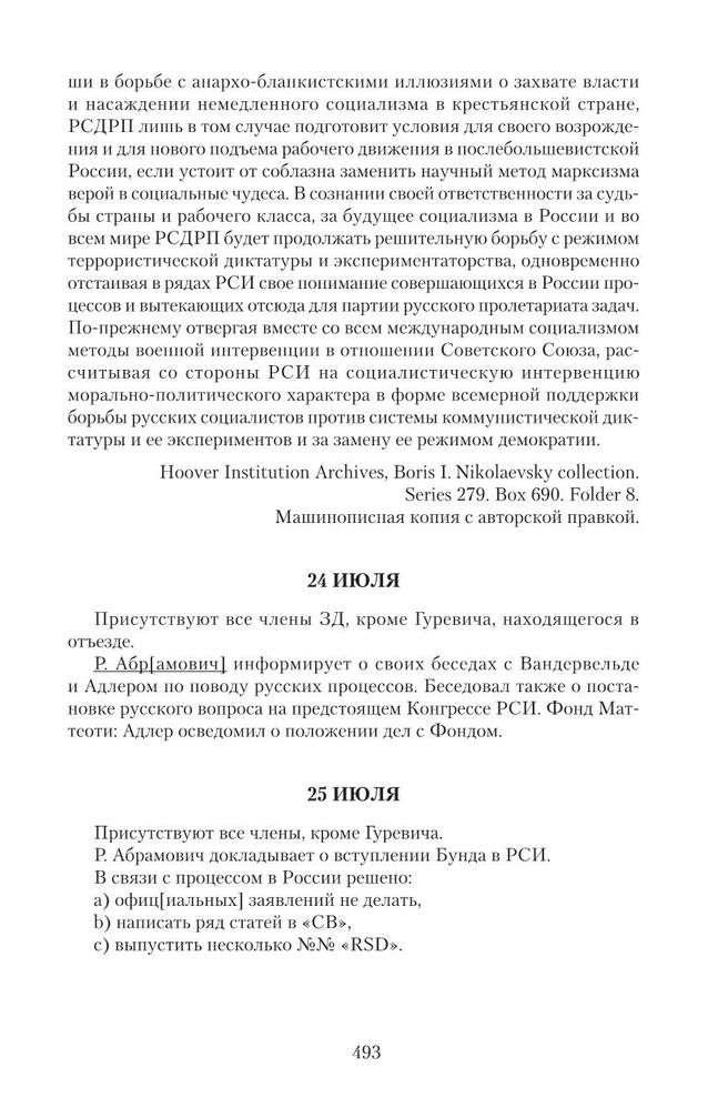 Протокол Заграничной Делегации РСДРП. 1931 г. 24 июля