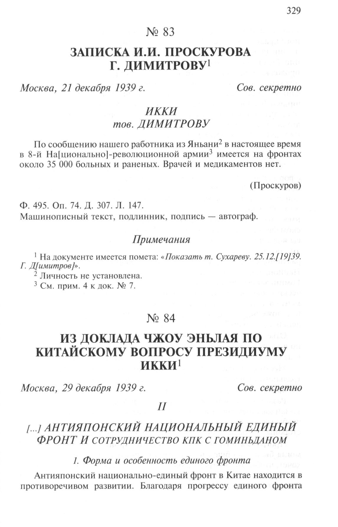 Из доклада Чжоу Эньлая по китайскому вопросу Президиуму ИККИ. Москва, 29 декабря 1939 г. // РГАСПИ. Ф. 495. Оп. 18. Д. 1309. Л. 60-132. Машинописный текст с рукописной правкой, подлинник.
