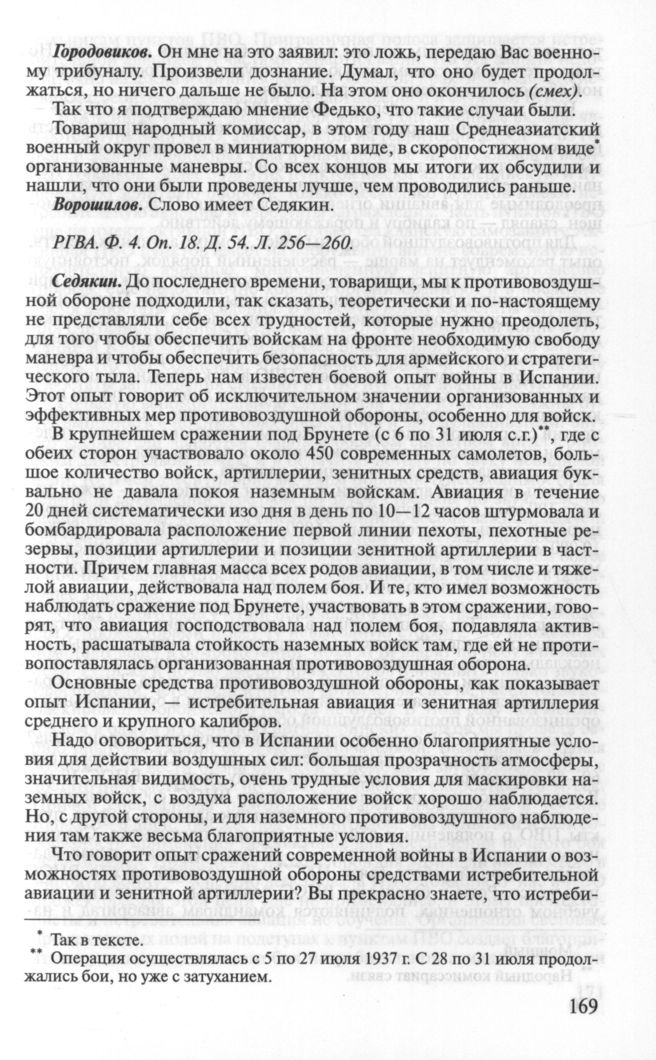 Стенограмма докладов и выступлений участников заседания Военного совета при НКО СССР. 21—23 ноября 1937 г. Вечернее заседание 22 ноября 1937 г. Седякин А.И. // РГВА. Ф. 4. Оп. 18. Д. 54. Л. 261-270.
