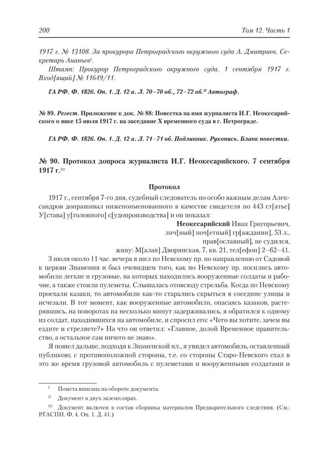 Главная Политические партии и движения Следственное дело большевиков : Материалы Предварительного следстви... Следственное дело большевиков. Сборник документов в 2-х книгах. Кни... Документы Протокол допроса журналиста И.Г. Неокесарийского. 7 сентября 1917 г.