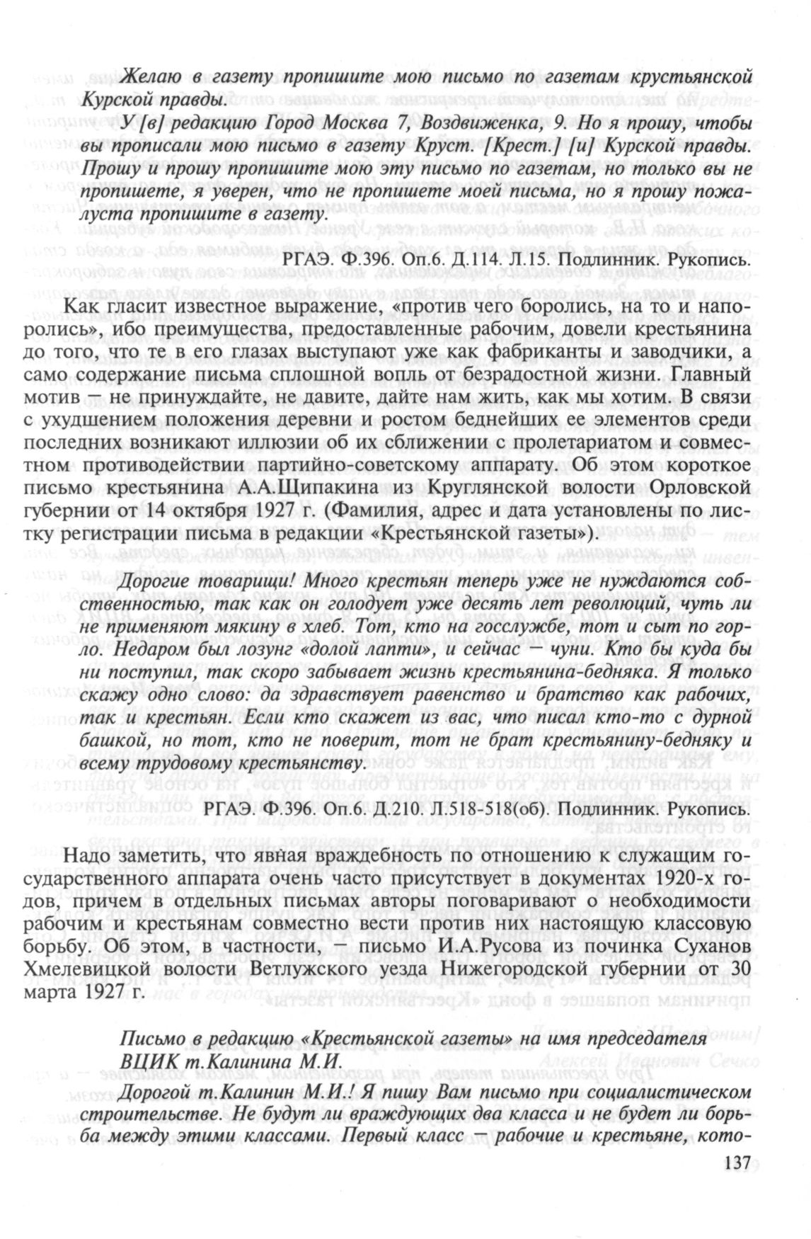 Голос народа. Письма и отклики рядовых советских граждан о событиях 1918—1932 гг. — М.: РОССПЭН, 1997.
