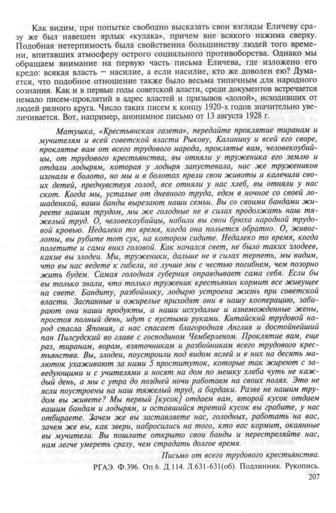 Анонимное письмо от 13 августа 1928 г. в «Крестьянскую газету»