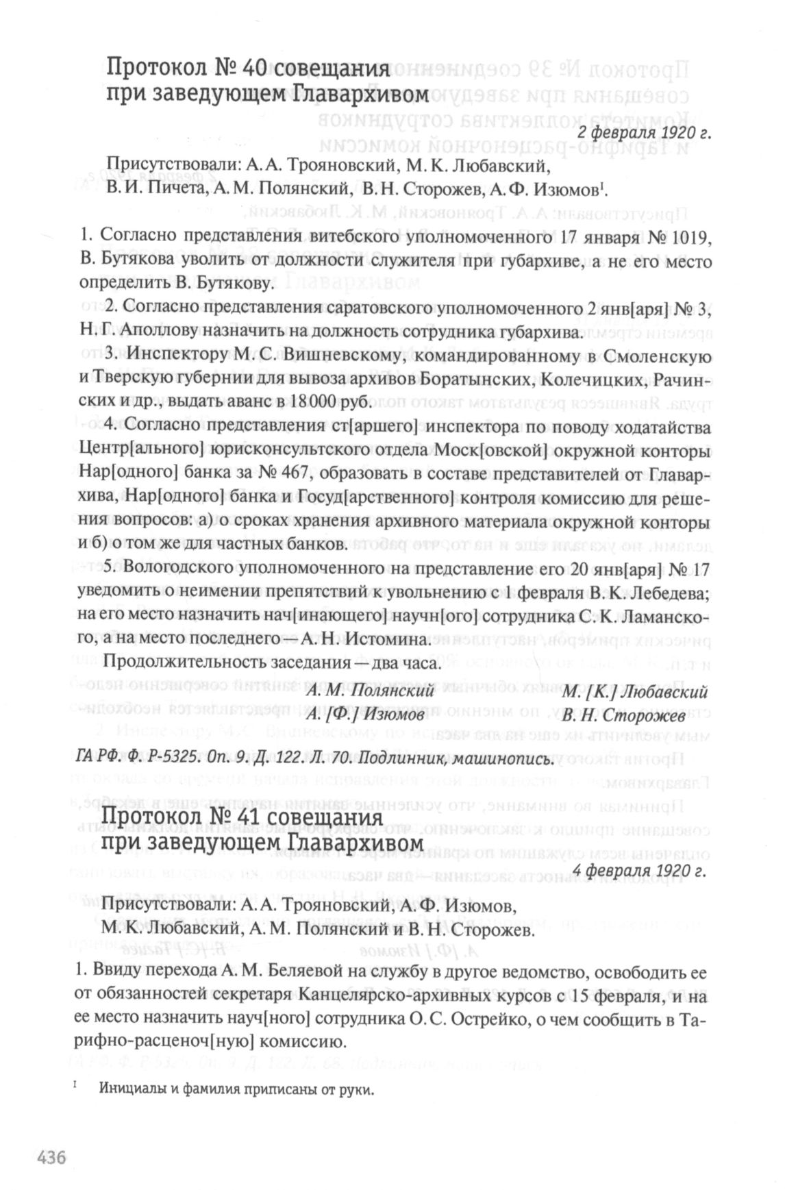 Протокол № 40 совещания при заведующем Главархивом. 2 февраля 1920 г.