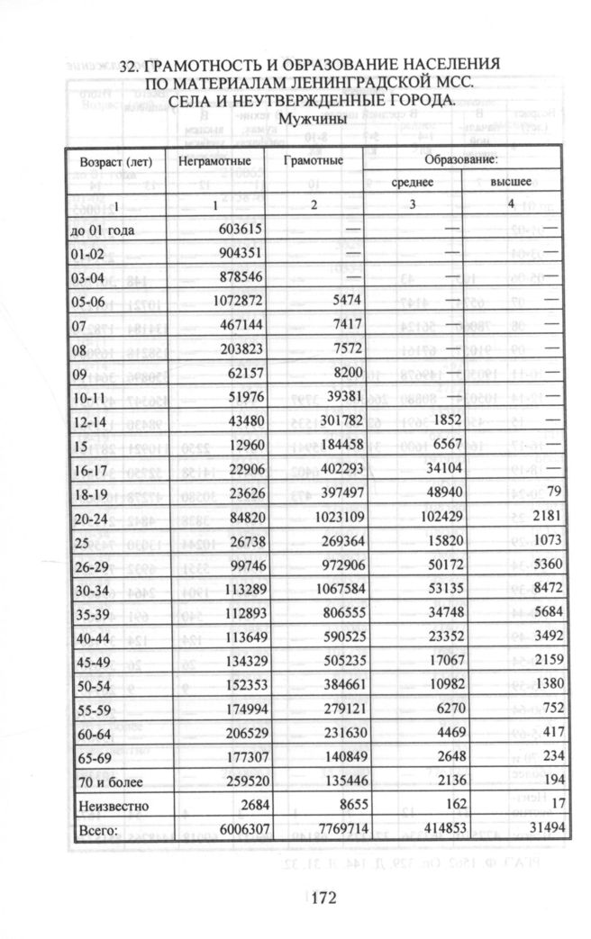Грамотность и образование населения по материалам Ленинградской МСС. Села и неутвержденные города