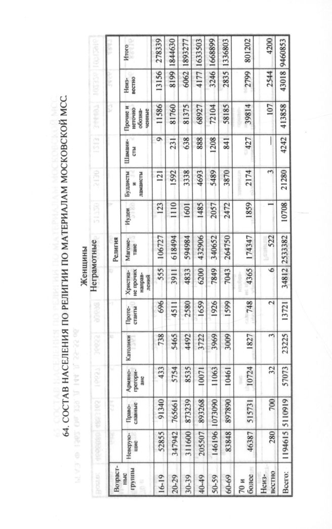 Состав населения по религии по материалам Московской МСС. Женщины // РГАЭ. Ф. 1562. Оп. 329. Д. 144. Л. 55-55 об.