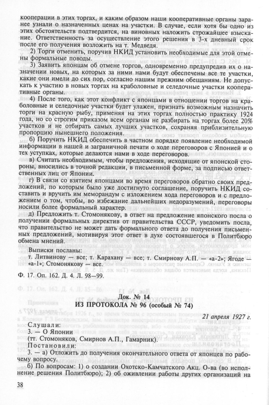 Из протокола № 96 (особый № 74). О Японии. 21 апреля 1927 г. // РГАСПИ. Ф. 17. Оп. 162. Д. 4. Л. 104.
