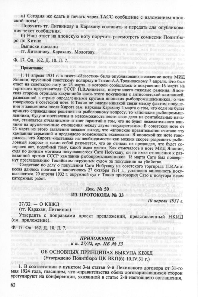 Из протокола № 33. О КВЖД. 10 апреля 1931 г. // РГАСПИ. Ф. 17. Оп. 162. Д. 10. Л. 7.