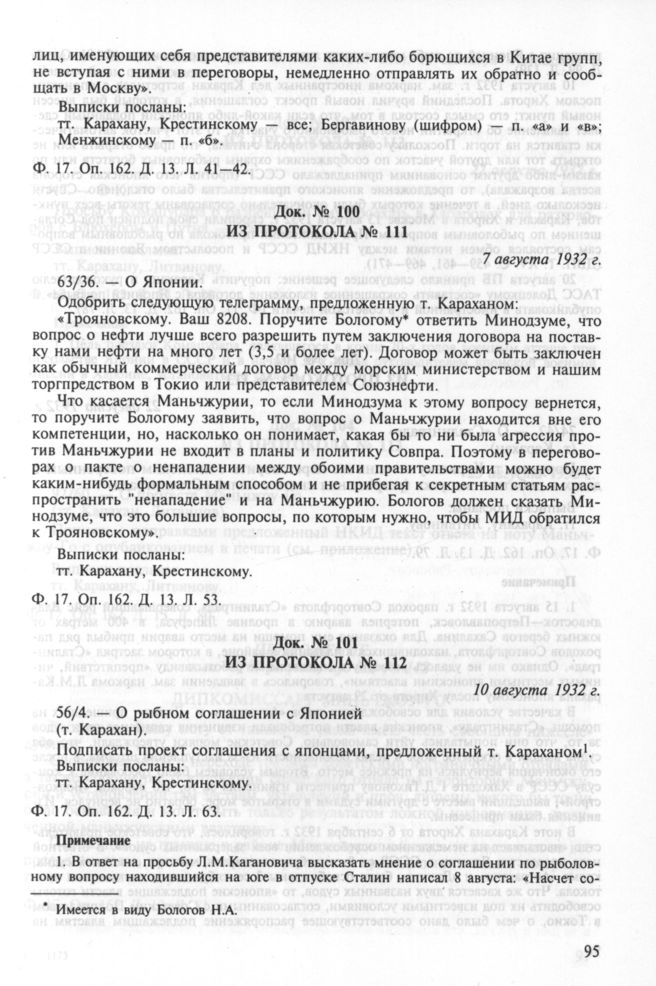 Из протокола № 112. О рыбном соглашении с Японией. 10 августа 1932 г. // РГАСПИ. Ф. 17. Оп. 162. Д. 13. Л. 63.