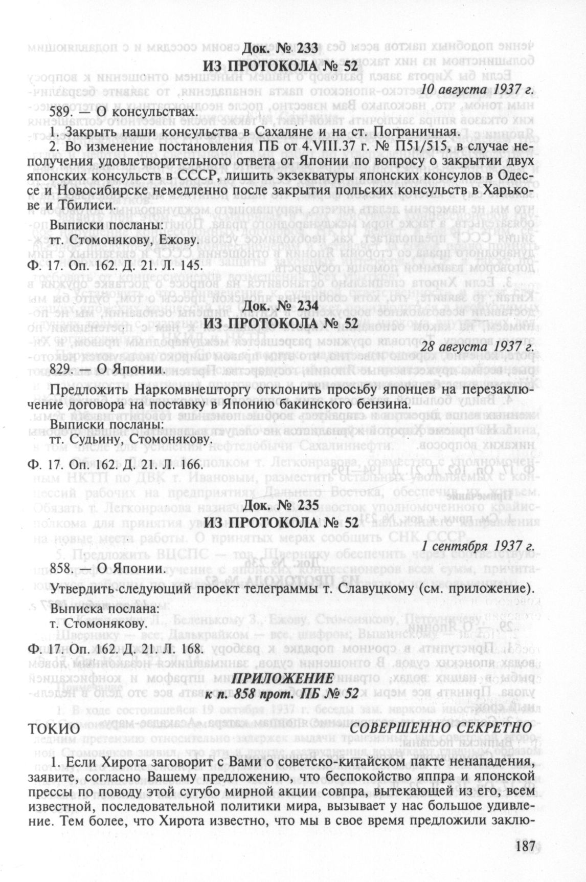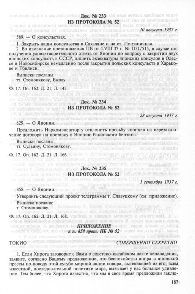 Из протокола № 52. О Японии. 1 сентября 1937 г. // РГАСПИ. Ф. 17. Оп. 162. Д. 21. Л. 168.