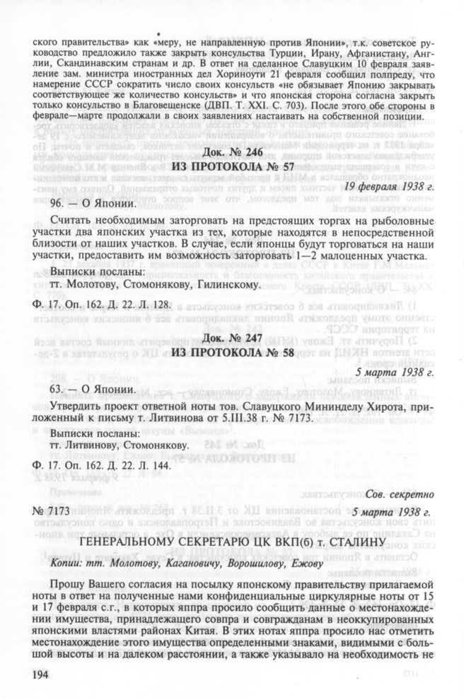 Из протокола № 57. О Японии. 19 февраля 1938 г. // РГАСПИ. Ф. 17. Оп. 162. Д. 22. Л. 128.