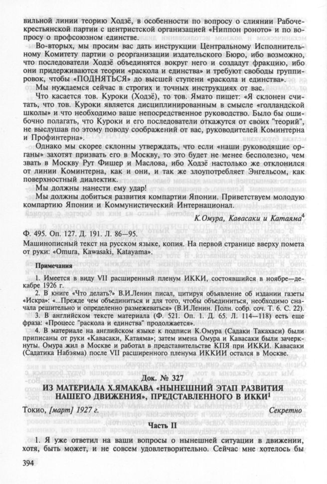 Из материала Х. Ямакава «Нынешний этап развития нашего движения», представленного в ИККИ. Токио, [март] 1927 г.