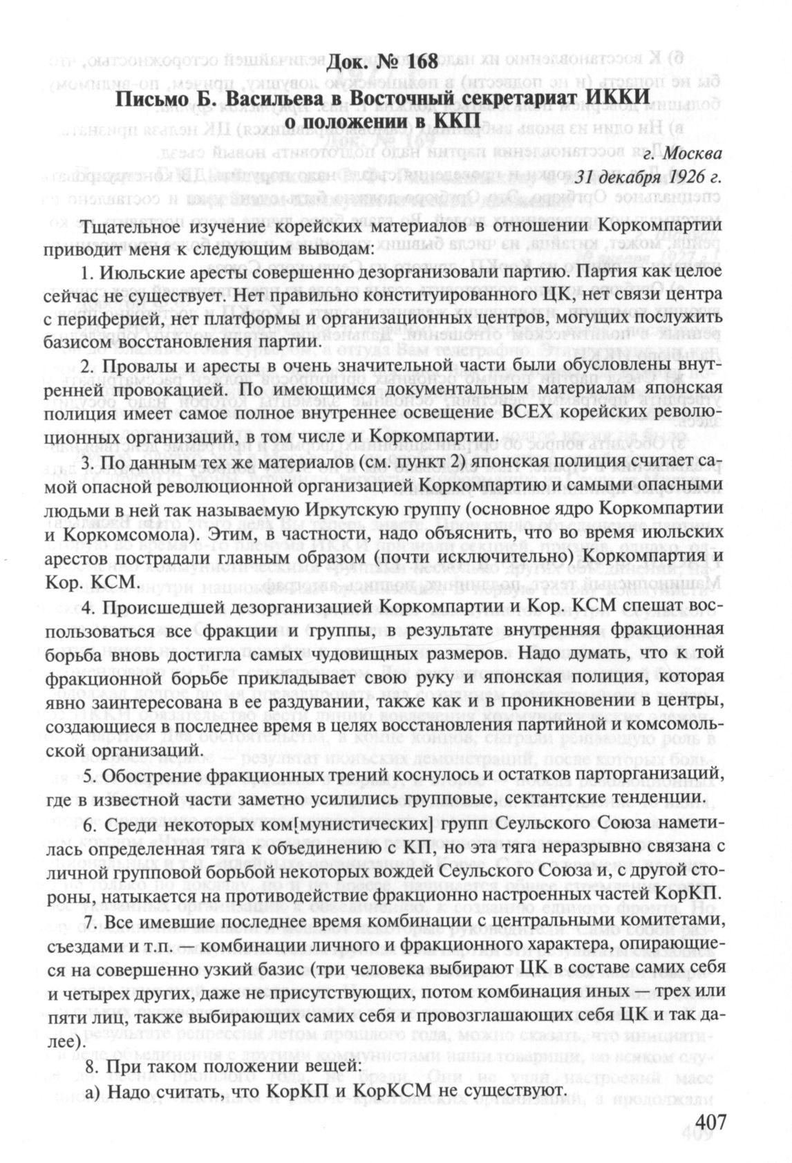 Письмо Б. Васильева в Восточный секретариат ИККИ о положении в ККП....