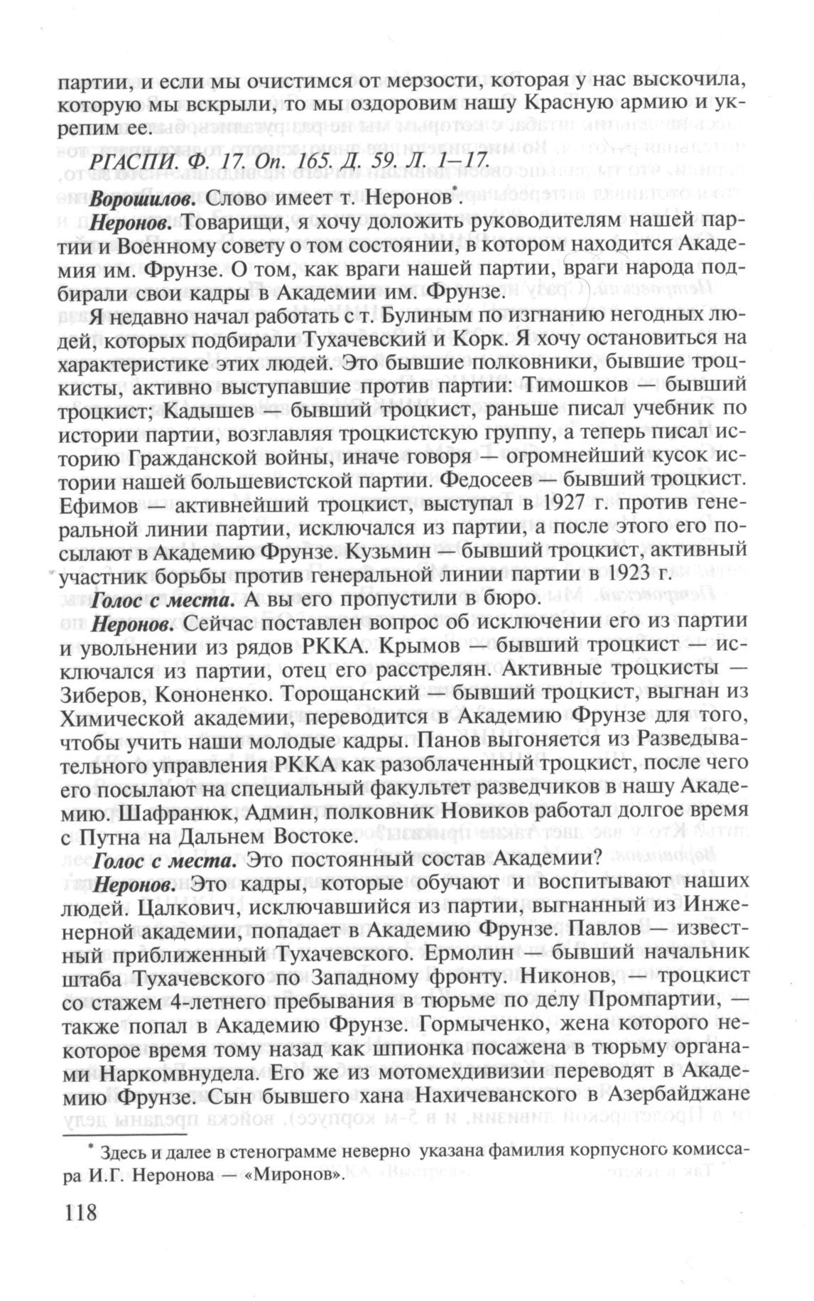Стенограмма заседания Военного совета при наркоме обороны СССР 1—4 июня 1937 г. Утреннее заседание Военного совета 2 июня 1937 г. Неронов И.Г. // РГАСПИ. Ф. 17. Оп. 165. Д. 59. Л. 18-27.