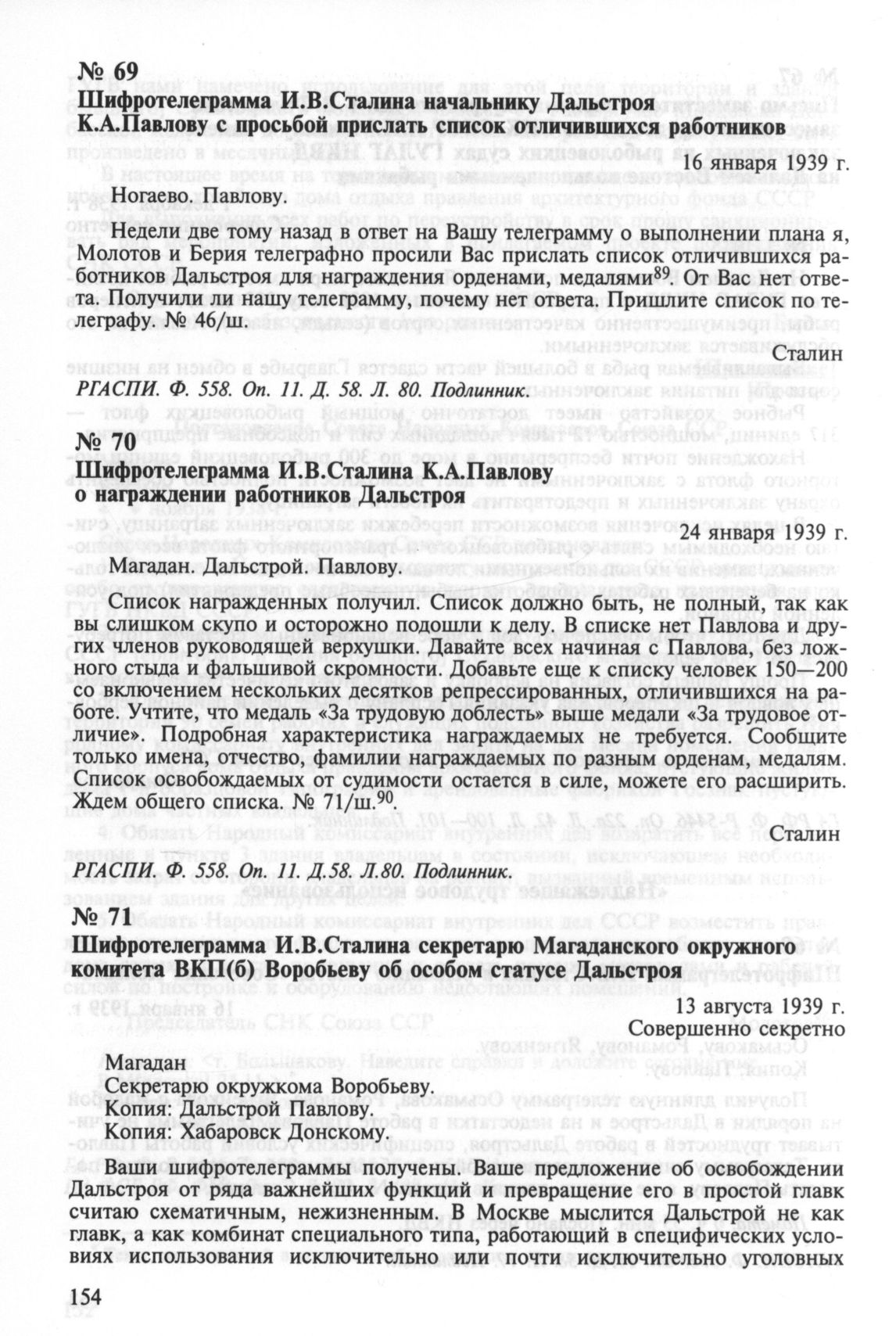 Шифротелеграмма И.В.Сталина секретарю Магаданского окружного комитета ВКП(б) Воробьеву об особом статусе Дальстроя. 13 августа 1939 г. // РГАСПИ. Ф. 558. Оп. 11. Д. 58. Л. 107. Подлинник.