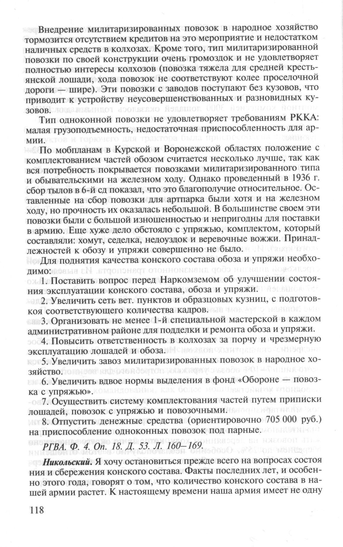 Доклады и выступления участников заседания Военного совета при НКО СССР об итогах боевой подготовки РККА за 1936 г. и задачах на 1937 г. 13—19 октября 1936 г. Утреннее заседание 14 октября 1936 г. Никольский Н.М. // РГВА. Ф. 4. Оп. 18. Д. 53. Л. 170-176.