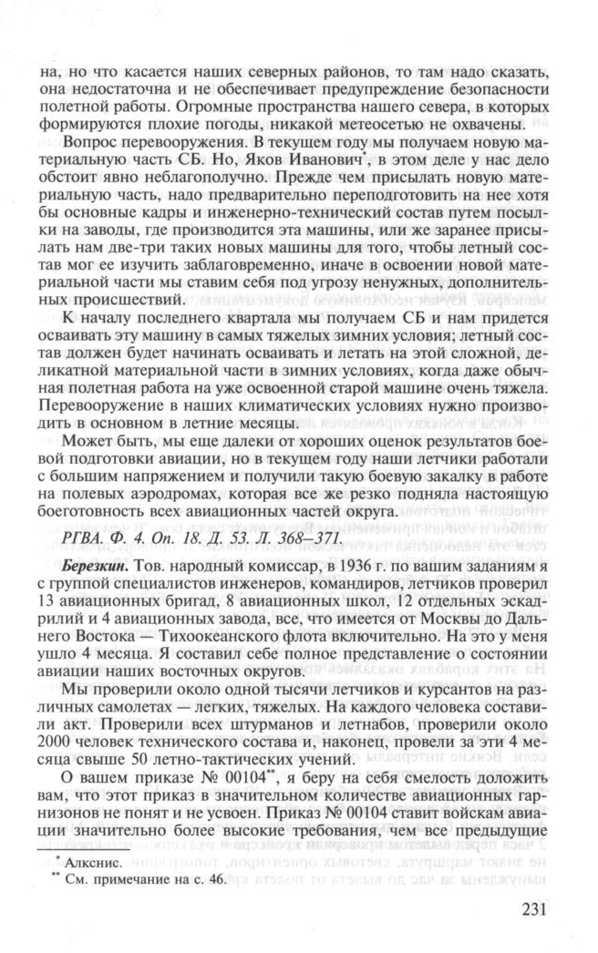 Доклады и выступления участников заседания Военного совета при НКО СССР об итогах боевой подготовки РККА за 1936 г. и задачах на 1937 г. 13—19 октября 1936 г. Утреннее заседание 15 октября 1936 г. Березкин Л.С. // РГВА. Ф. 4. Оп. 18. Д. 53. Л. 372-379.