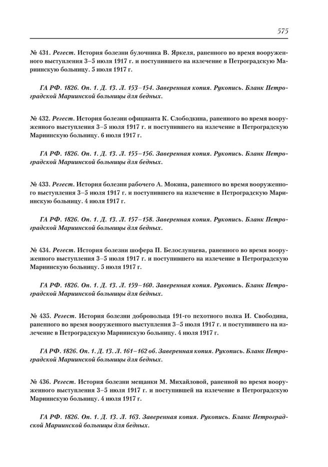 Главная Политические партии и движения Следственное дело большевиков : Материалы Предварительного следстви... Следственное дело большевиков. Сборник документов в 2-х книгах. Кни... Документы Регест. История болезни булочника В. Яркеля, раненного во время воо...