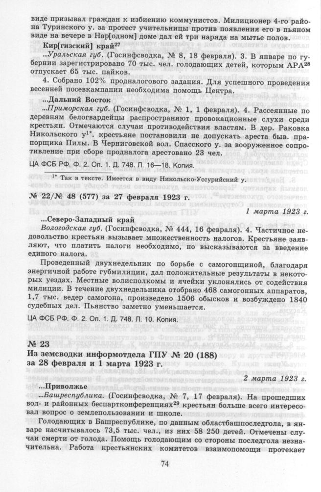Из госинформсводки информотдела ГПУ № 48 (577) за 27 февраля 1923 г. 1 марта 1923 г.