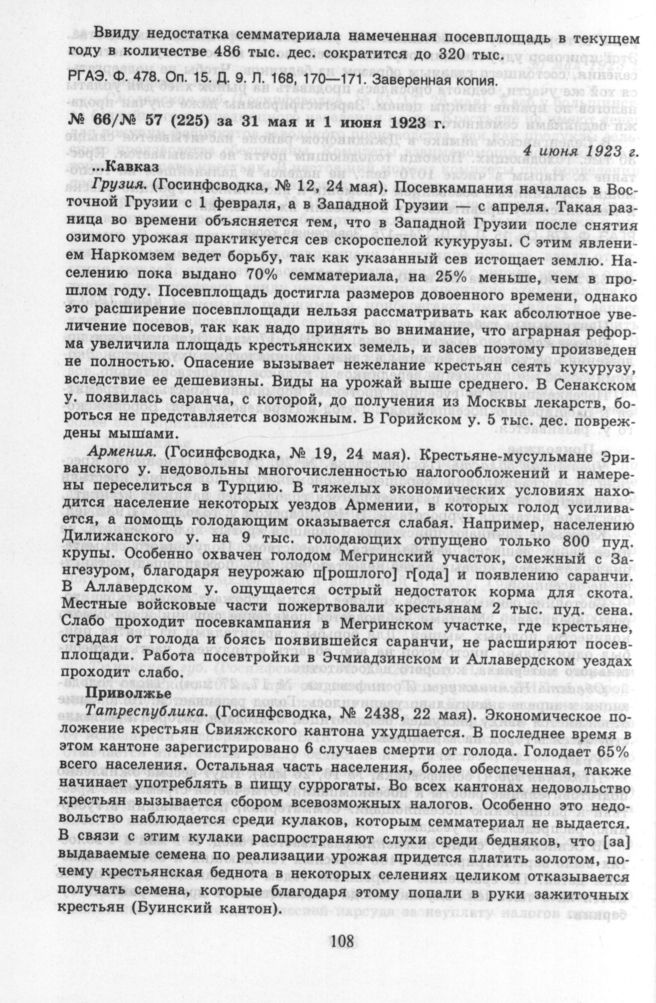 Из земсводки информотдела ГПУ № 57 (225) за 31 мая и 1 июня 1923 г. 4 июня 1923 г.