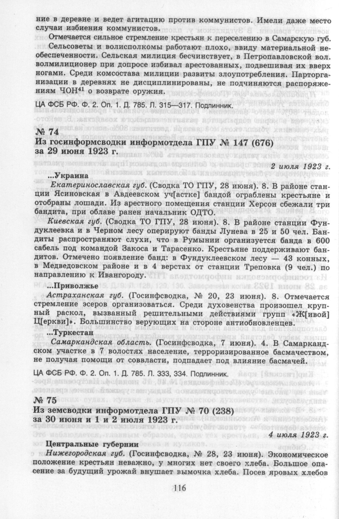 Из госинформсводки информотдел а ГПУ № 147 (676) з а 29 июня 1923 г. 2 июля 1923 г. // ЦА ФСБ РФ. Ф. 2. Оп. 1. Д. 785. Л. 333, 334. Подлинник.