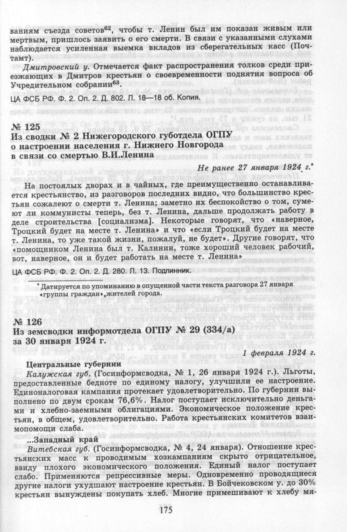 Из земсводки информотдела ОГПУ № 29 (334/а ) за 30 января 1924 г. 1 февраля 1924 г. // ЦА ФСБ РФ. Ф. 2. Оп. 2. Д. 755. Л. 312—314. Заверенная копия.