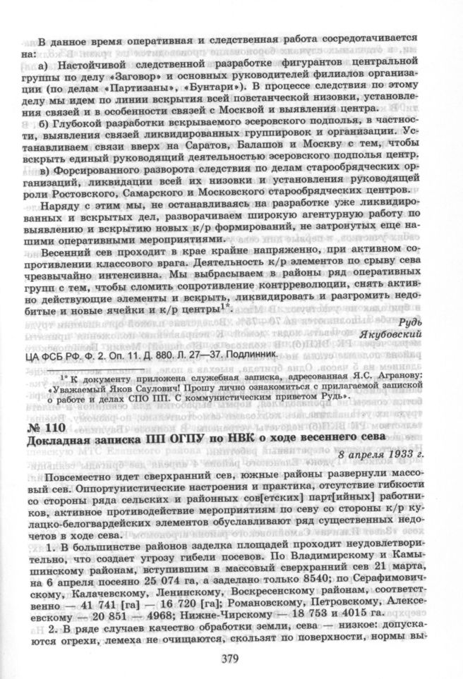 Докладная записка ПП ОГПУ по НВК о ходе весеннего сева. 8 апреля 1933 г. // ЦА ФСБ РФ. Ф. 2. Оп. 11. Д. 1044. Л. 162—167. Заверенная копия.