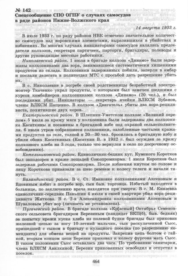 Спецсообщение СПО ОГПУ о случаях самосудов в ряде районов Нижне-Волжского края. 14 августа 1933 г.
