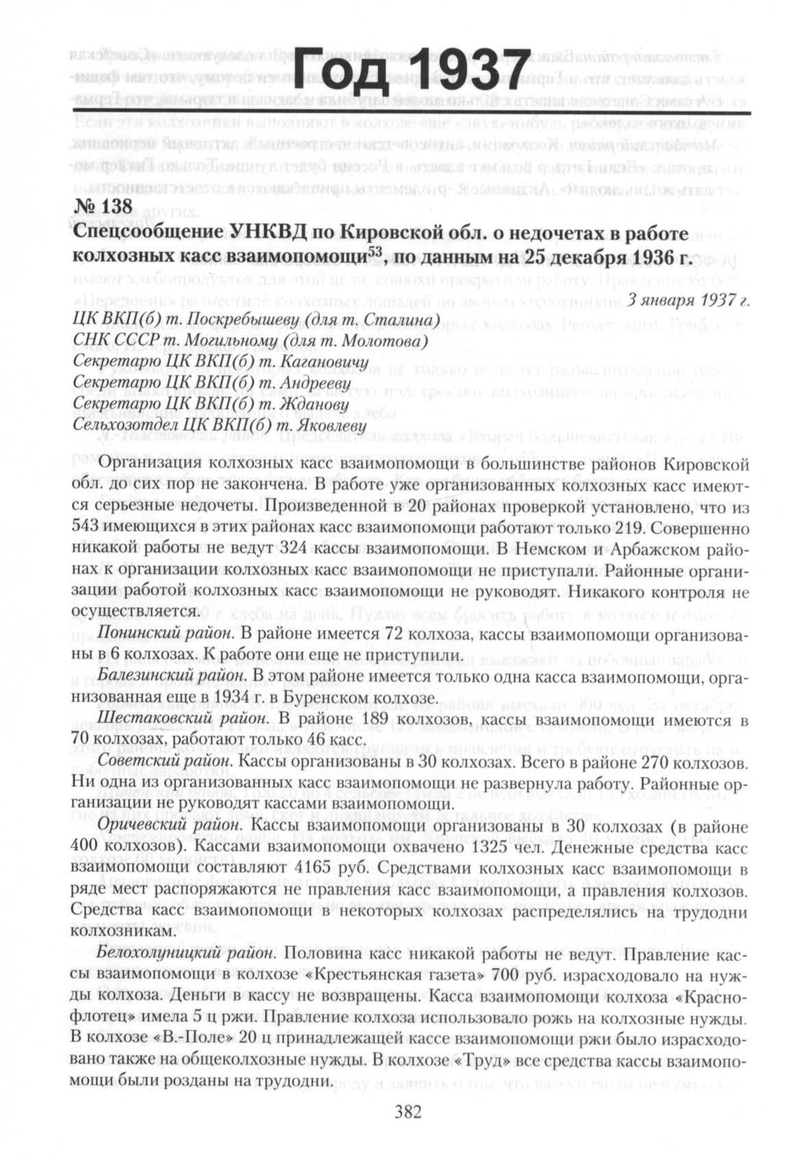 Спецсообщение УНКВД по Кировской обл. о недочетах в работе колхозных касс взаимопомощи, по данным на 25 декабря 1936 г. 3 января 1937 г.