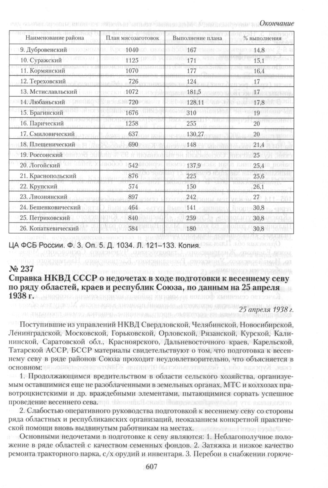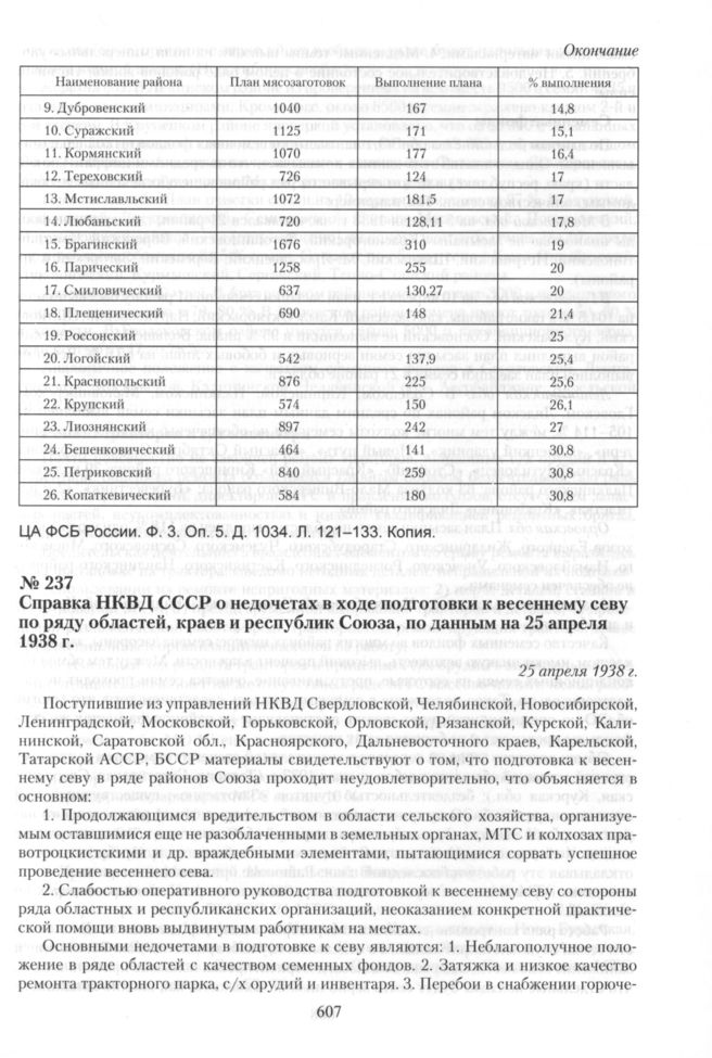 Справка НКВД СССР о недочетах в ходе подготовки к весеннему севу по ряду областей, краев и республик Союза, по данным на 25 апреля 1938 г. 25 апреля 1938 г. // ЦА ФСБ России. Ф. 3. Оп. 5. Д. 1729. Л. 11-26. Копия.