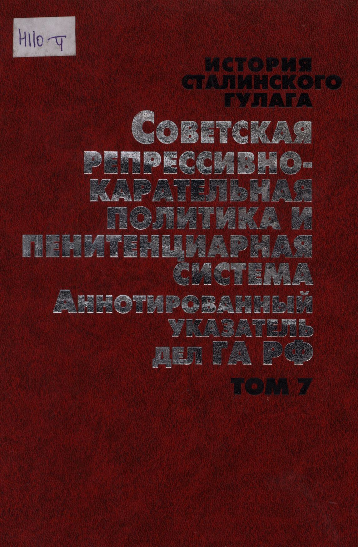 | Название издания | История сталинского Гулага. Конец 1920-х — первая половина 1950-х годов: Собрание документов в 7 т. Т. 7. Советская репрессивно-карательная политика и пенитенциарная система в материалах Государственного архива Российской Федерации (1) |