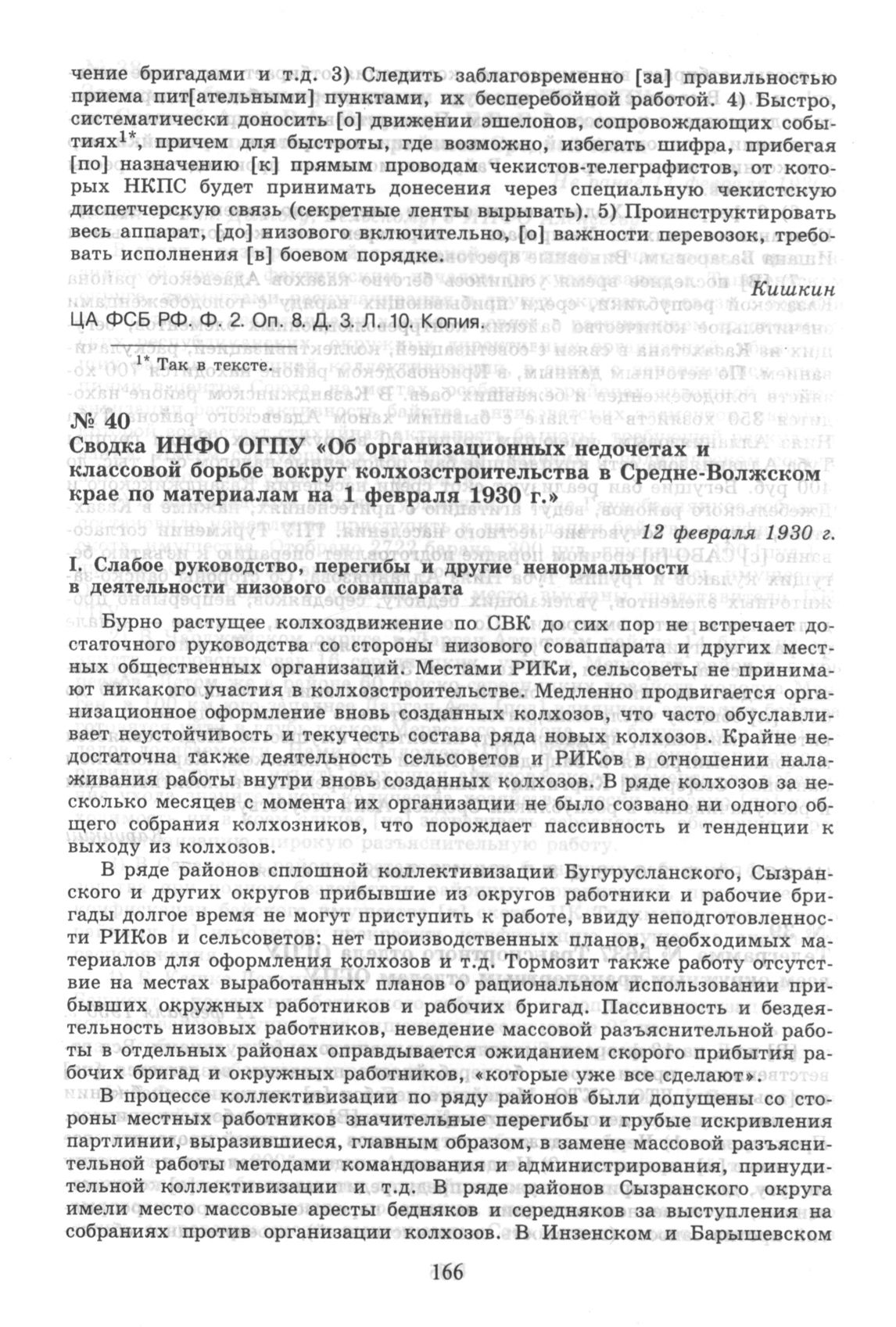 Сводка ИНФО ОГПУ «Об организационных недочетах и классовой борьбе вокруг колхозстроительства в Средне-Волжском крае по материалам на 1 февраля 1930 г.». 12 февраля 1930 г.