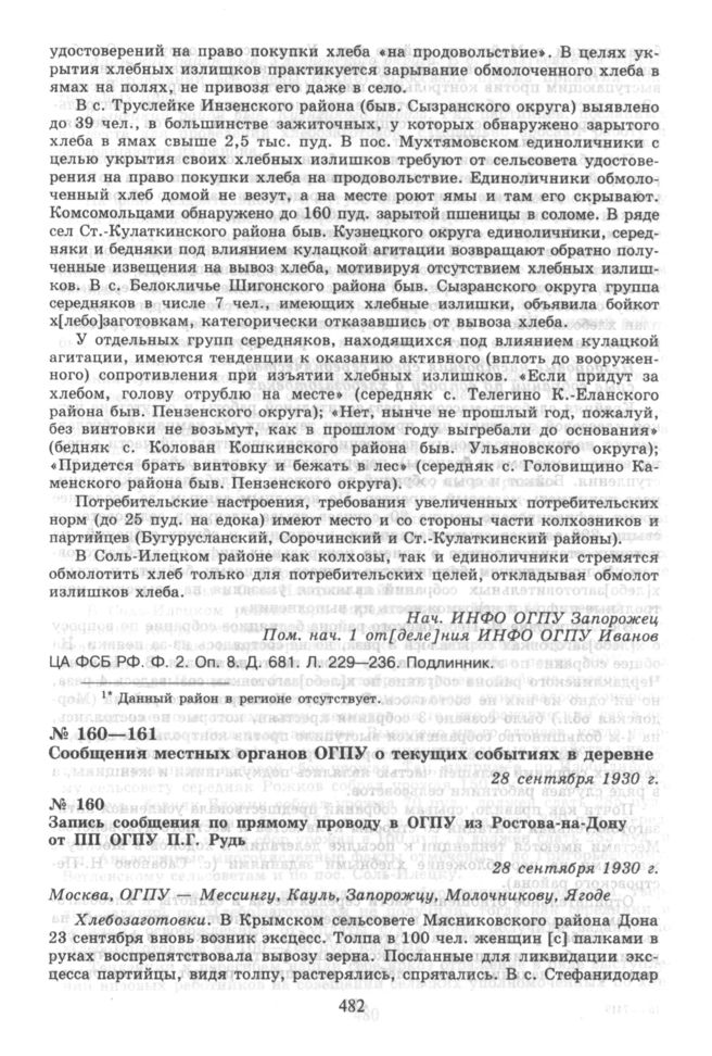 Советская деревня глазами ВЧК—ОГПУ—НКВД. 1918—1939. Документы и материалы. В 4-х т. Т. 3. 1930—1934 гг. Кн. 1. 1930—1931 гг. — М.: РОССПЭН, 2003.