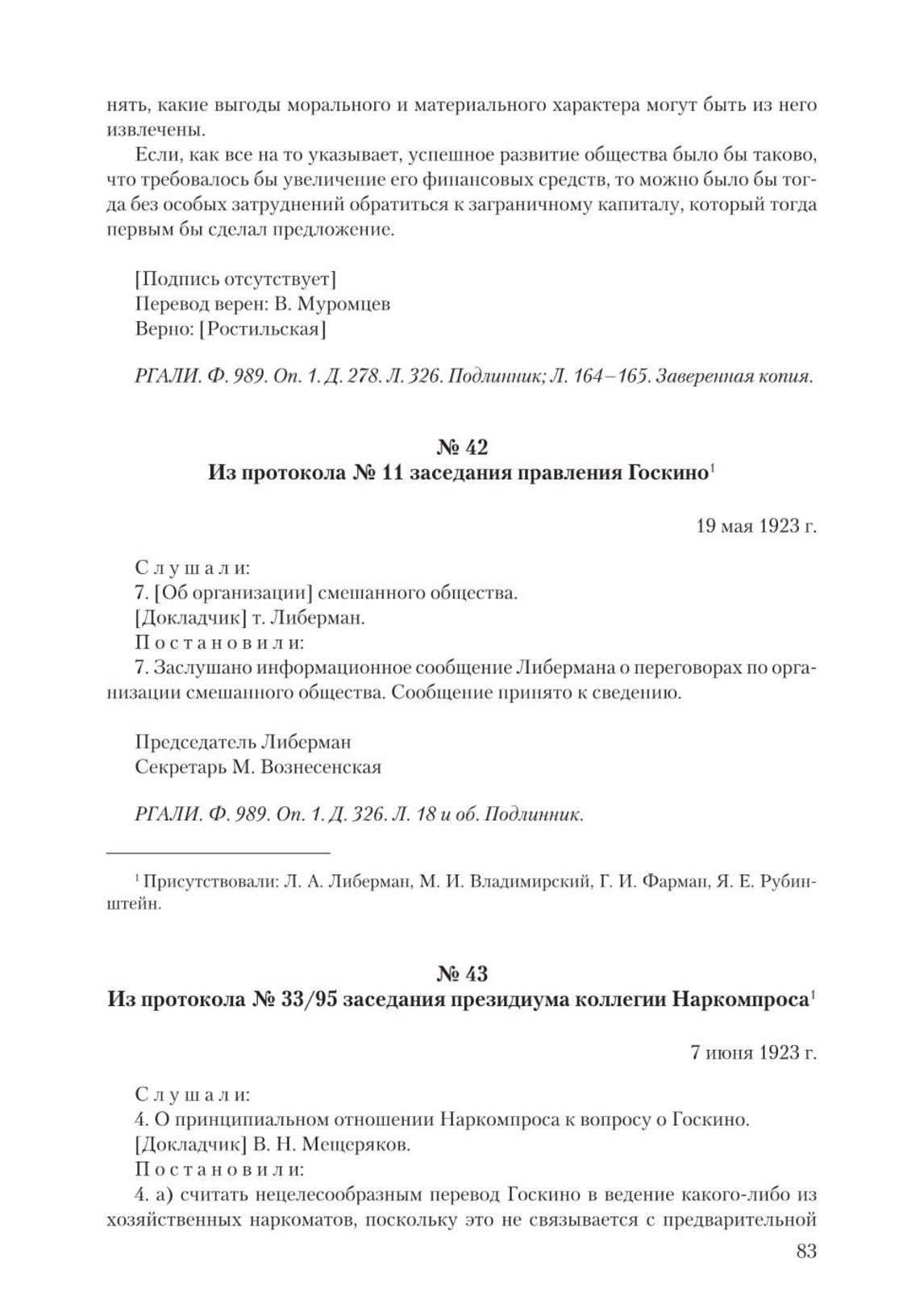 Из протокола № 11 заседания правления Госкино. 19 мая 1923 г. // РГАЛИ. Ф. 989. Оп. 1. Д. 326. Л. 18 и об. Подлинник.
