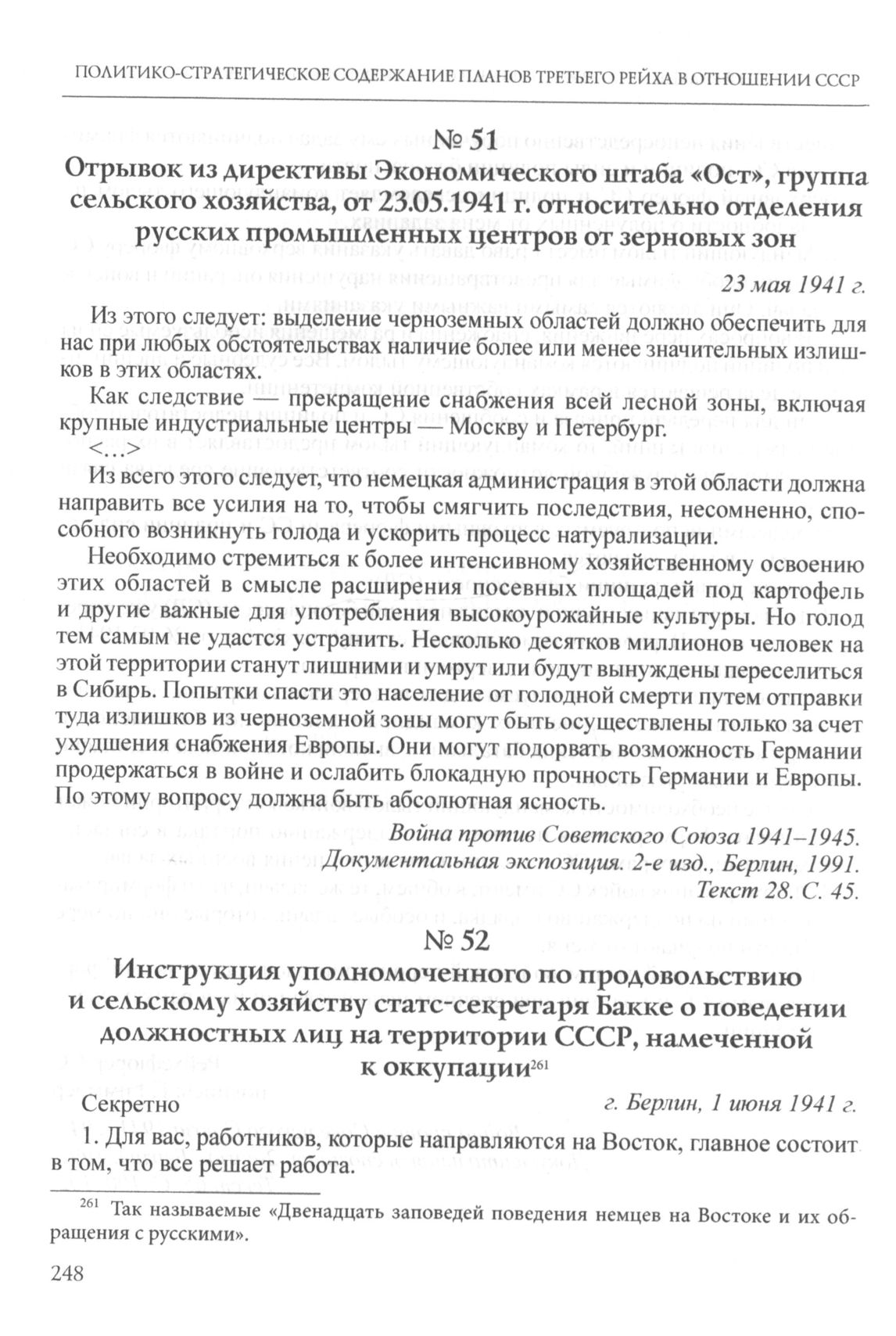 Инструкция уполномоченного по продовольствию и сельскому хозяйству статс-секретаря Бакке о поведении должностных лиц на территории СССР, намеченной к оккупации (г. Берлин,1 июня 1941 г.) // ГА РФ. Ф. 7021. Оп. 148. Д. 12. Л. 59—63 / Пер. с нем.