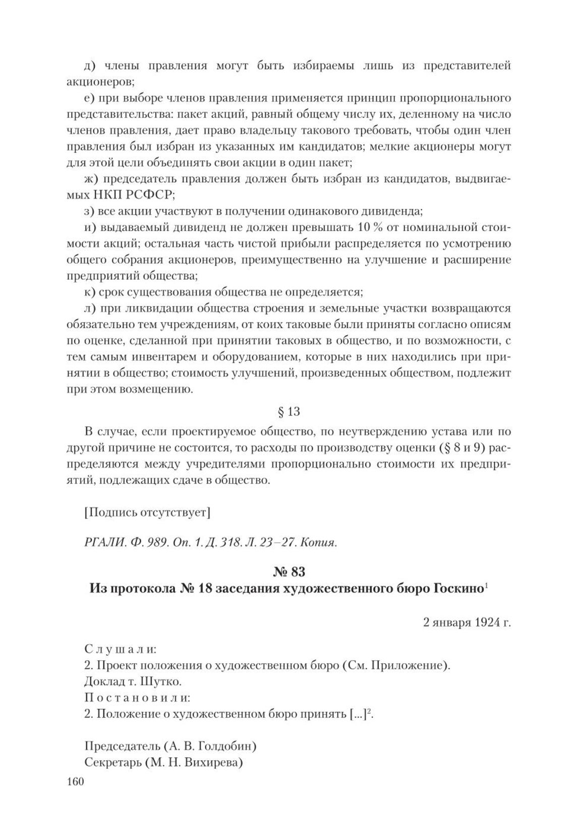 Из протокола № 18 заседания художественного бюро Госкино. 2 января 1924 г. // РГАЛИ. Ф. 989. Оп. 1. Д. 430. Л. 2–3. Копия. Л. 5. Копия.