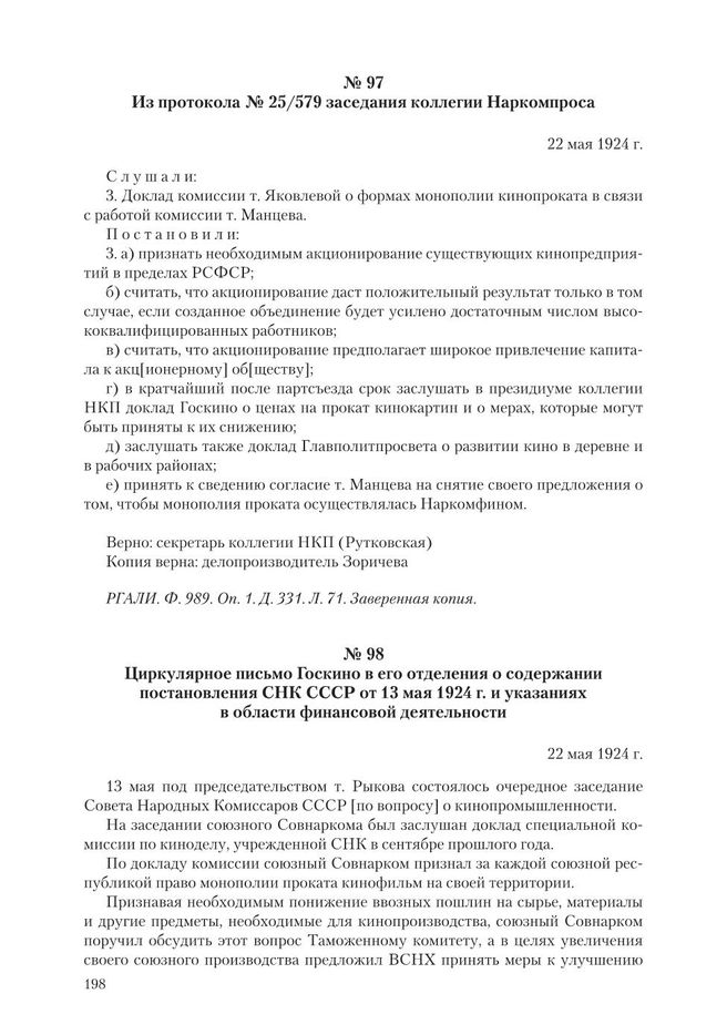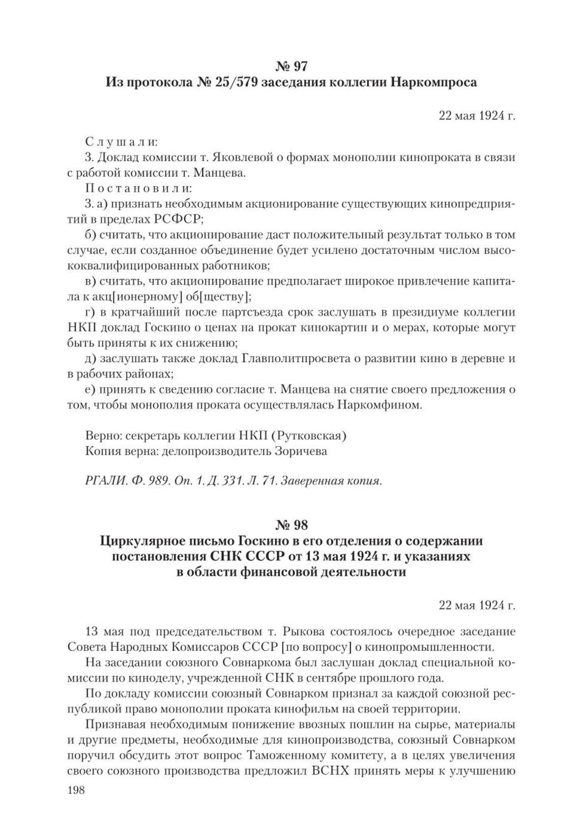 Кино: организация управления и власть. 1917—1938 гг.: Документы. — М.: РОССПЭН, 2016.