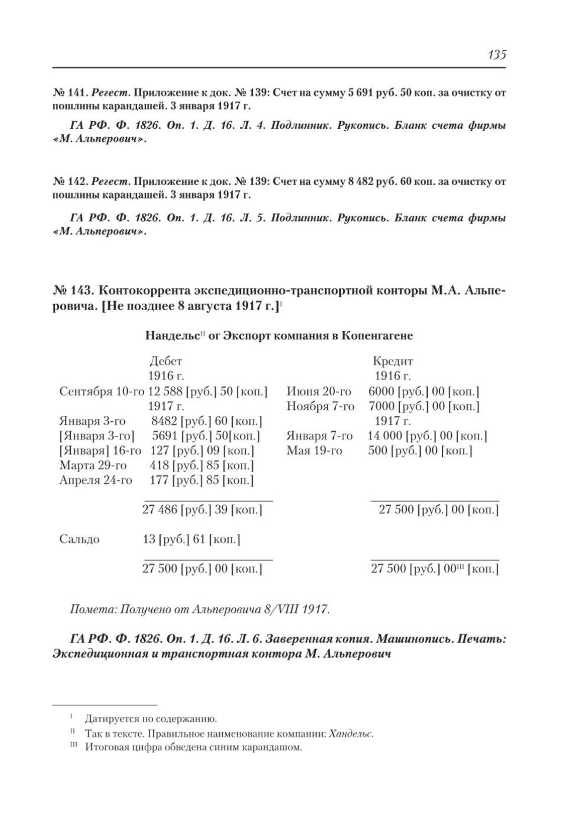 Контокоррента экспедиционно-транспортной конторы М.А. Альперовича. Не позднее 8 августа 1917 г. // ГА РФ. Ф. 1826. Оп. 1. Д. 16. Л. 6. Заверенная копия. Машинопись. Печать: Экспедиционная и транспортная контора М. Альперович