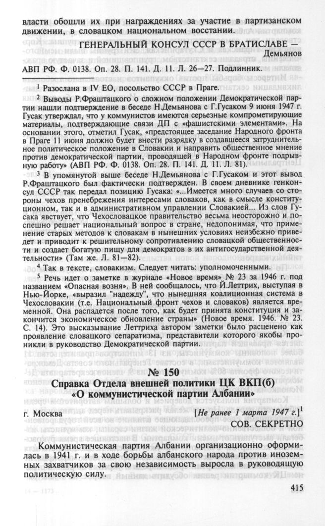 Справка ОВП ЦК ВКП(б) «О коммунистической партии Албании». Москва, ...
