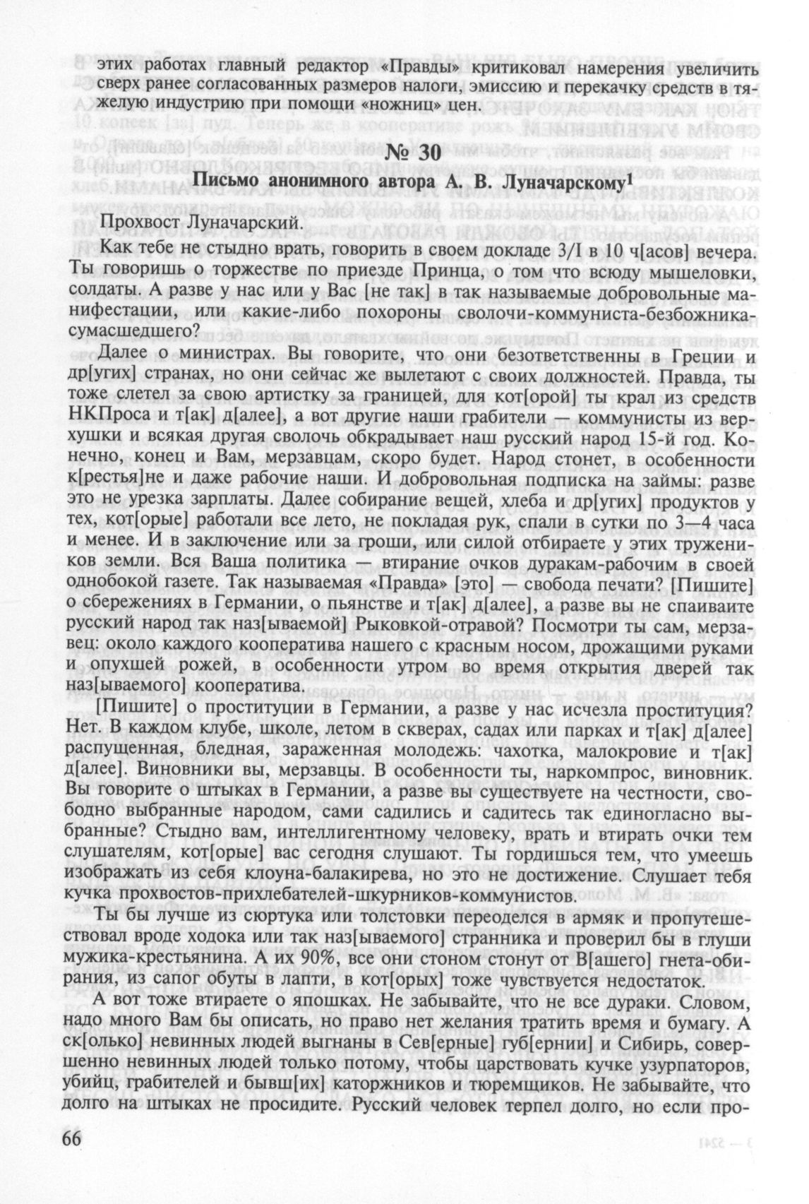 Письмо анонимного автора А. В. Луначарскому. Январь 1929 г.