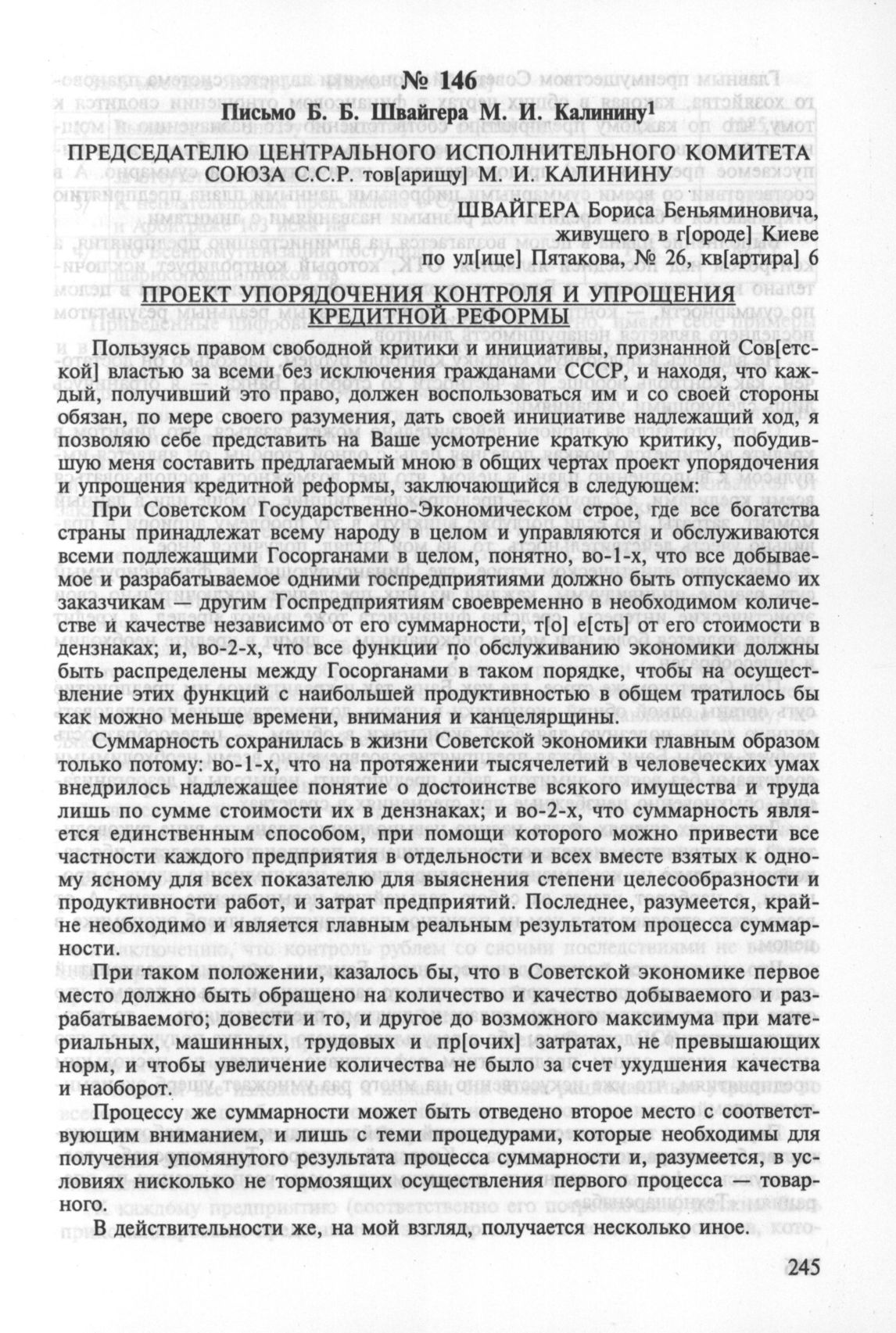 Письмо Б. Б. Швайгера М. И. Калинину. 6 сентября 1934 г. // ГА РФ. Ф. P-3316. Оп. 36. Д. 85. Л. 2—6. Подлинник, машинопись.