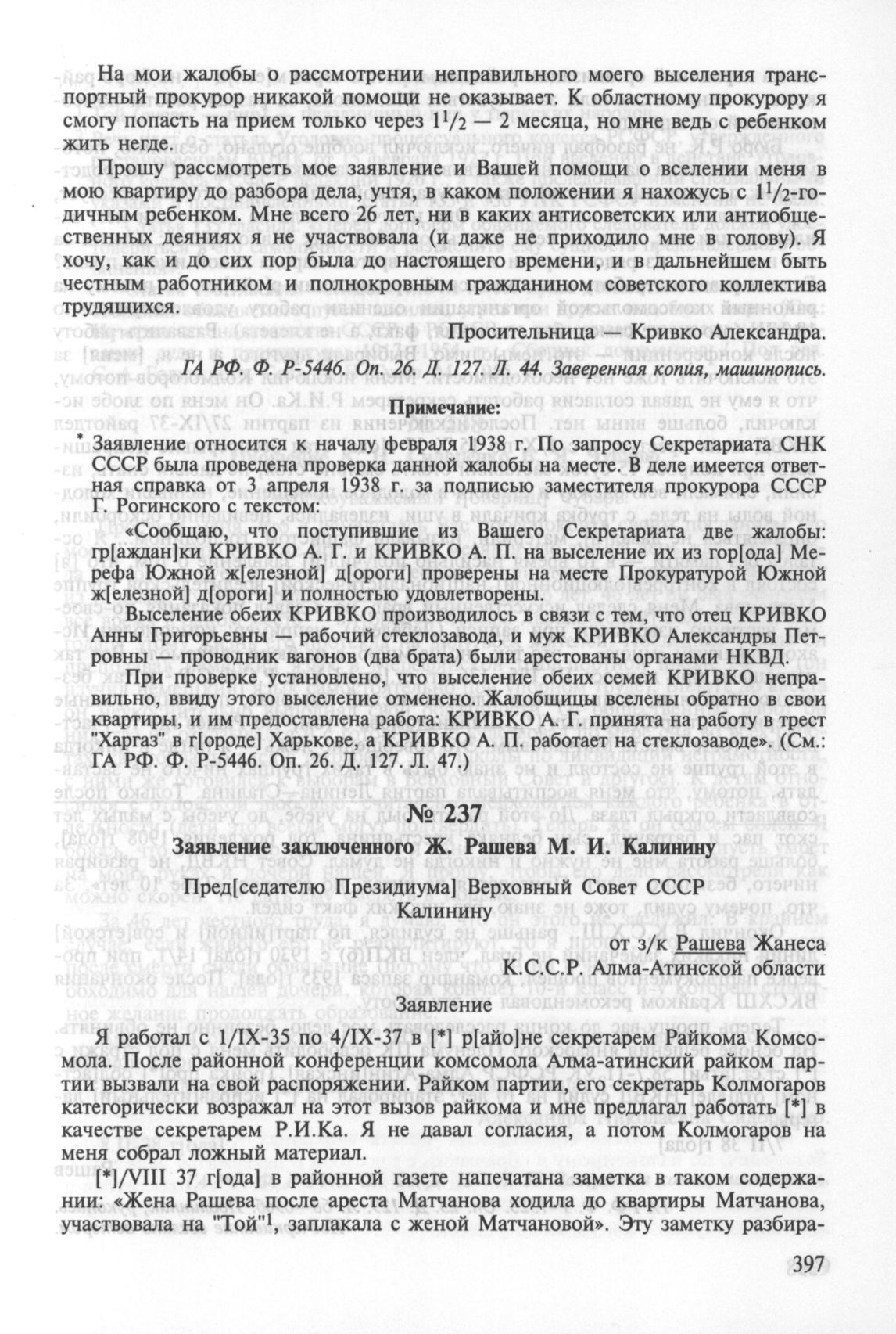 Заявление заключенного Ж. Рашева М. И. Калинину. 7 февраля 1938 г. // ГА РФ. Ф. P-7523. Оп. 23. Д. 129. Л. 68—69об. Подлинник, рукопись.