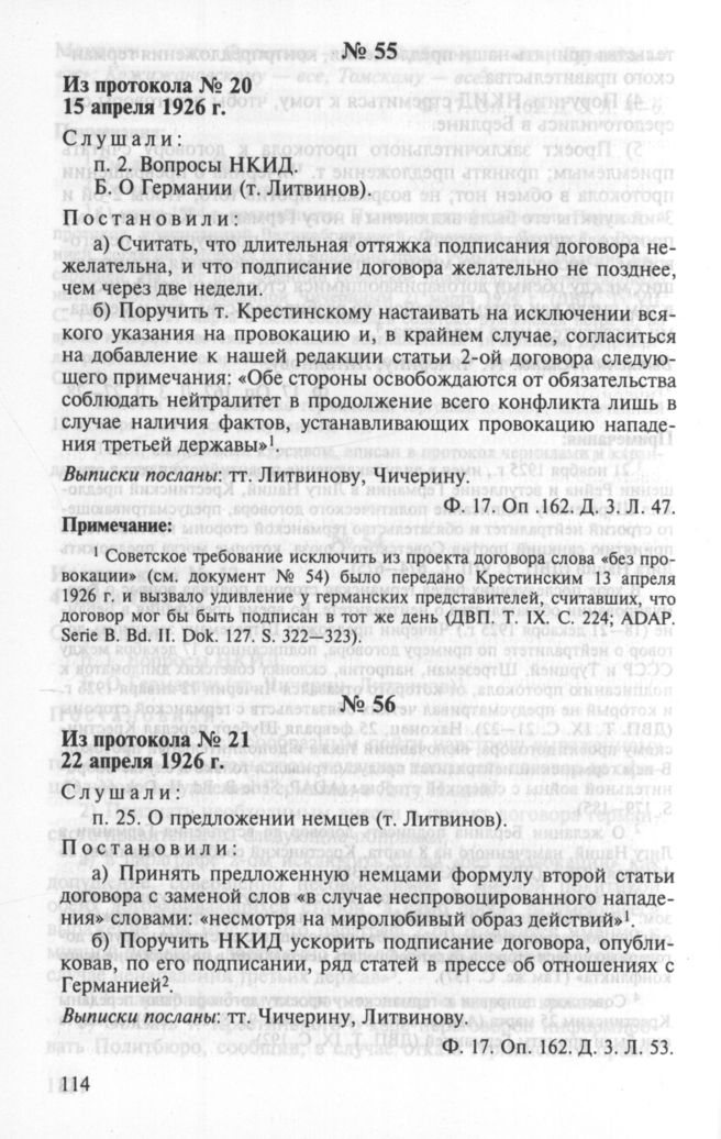 Особый протокол заседания Политбюро ЦК ВКП(б) № 20. 15 апреля 1926 г. // РГАСПИ. Ф. 17. Оп.162. Д. 3. Л. 47.