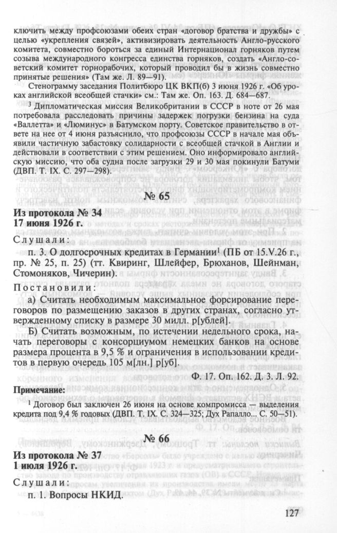 Особый протокол заседания Политбюро ЦК ВКП(б) № 34. 17 июня 1926 г. // РГАСПИ. Ф. 17. Оп. 162. Д. 3. Л. 92.